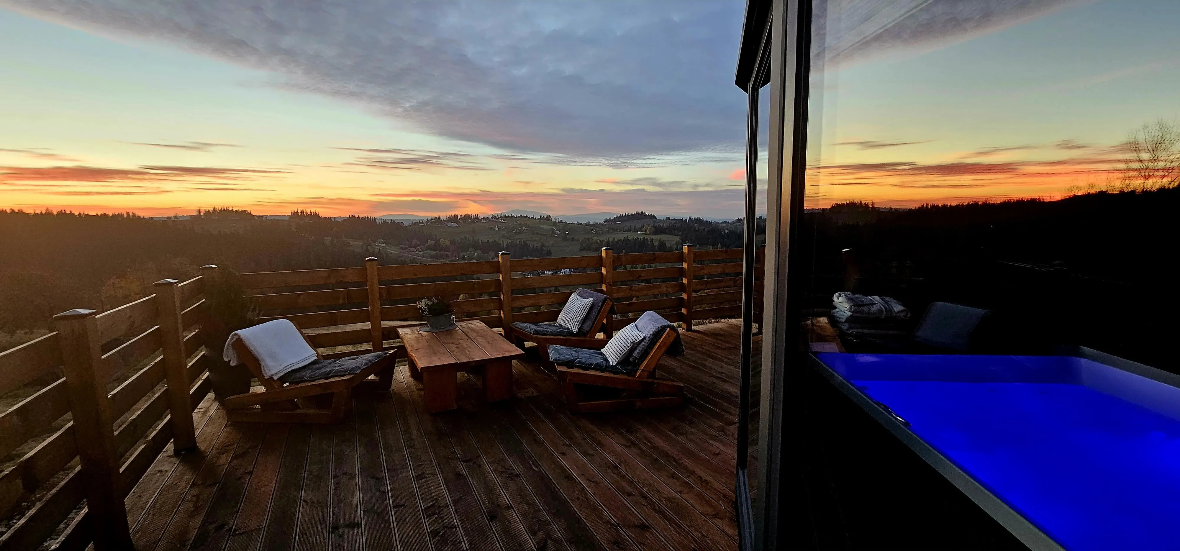 Nasz domek glampingowy to doskonała baza na rozpoczęcie każdej wyprawy. Po całym dniu wędrowania możesz zrelaksować się w jacuzzi na tarasie, podziwiając zachód słońca nad Tatrami.